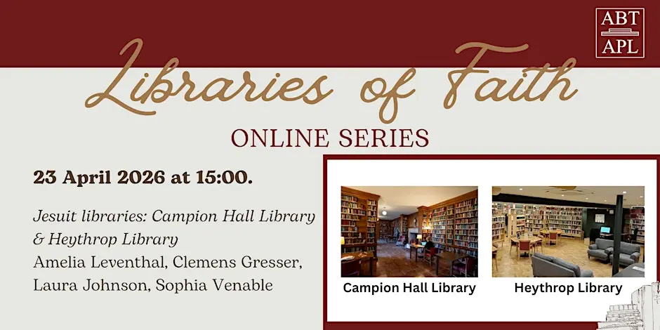 Join the Heythrop Library team and Laura Johnson from Campion Hall for a 60-minute Zoom session uncovering the treasures, histories, and research opportunities these libraries provide.